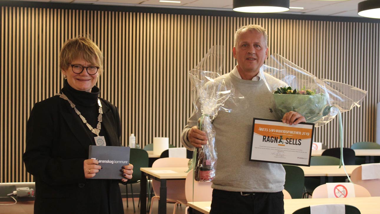 Det var stor stas på vårt hovedkontor da Ragn-Sells ble kåret til «årets samarbeidspartner» av Flyktning- og innvandrertjenesten i Lørenskog kommune. Ordfører Ragnhild Bergheim var tilstede for å overrekke prisen til vår egen driftsleder Thorbjørn Jansrud.