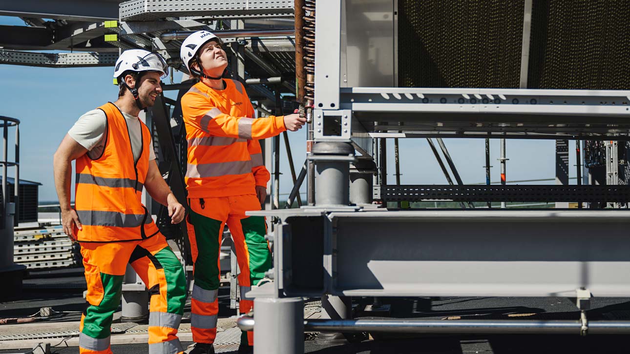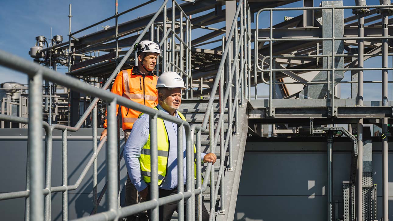 Mikael Hedström, administrerende direktør for Treatment & Detox hos Ragn-Sells AB og Pär Larshans, konsernets bærekraftsjef, tar fabrikken i nærmere øyesyn. Foto: Benjamin A. Ward