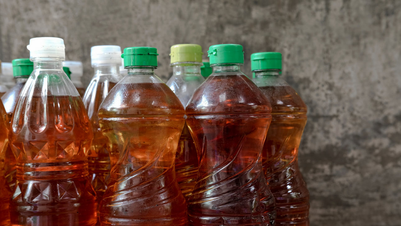 Smult, frityr og andre oljer må sorteres for seg selv i egnede flasker eller kanner.