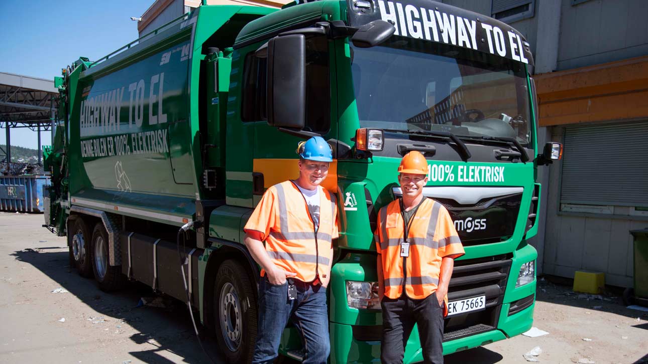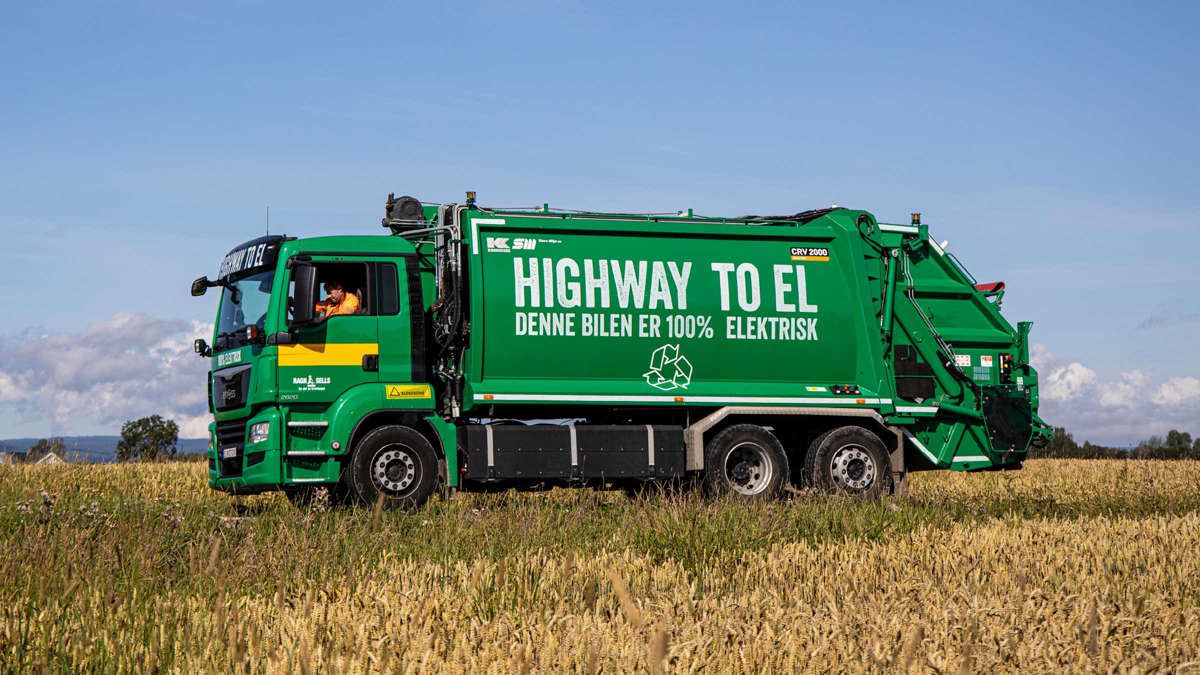 ”Highway to EL” heter Oslo sin første elektriske renovasjonsbil som har begynt å rulle i sentrum av byen. Ragn-Sells investerer nå i flere elektriske kjøretøy i form av trekkvogner og gravemaskiner til bruk på behandlingsanleggene i Oslo-området.