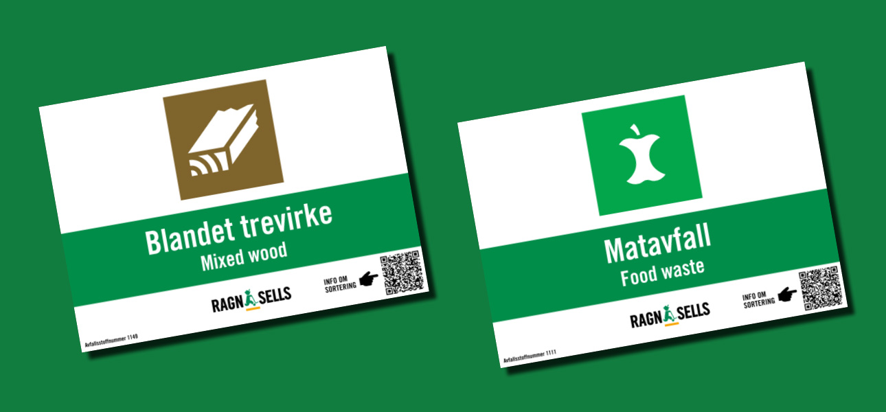 På våre nye merker fremkommer avfallstoffnummer samt norsk og engelsk navn på avfallstype. I tillegg finnes en QR-kode som enkelt kan scannes inn på din mobiltelefon, denne lenker til en mobilvennlig side som gir deg mer informasjon rundt sortering av avfallstypen. Merkene er allerede nå tilgjengelig i vår guide for kildesortering, inne på hver avfallstype kan du laste ned en høyoppløselig PDF i A3 format.