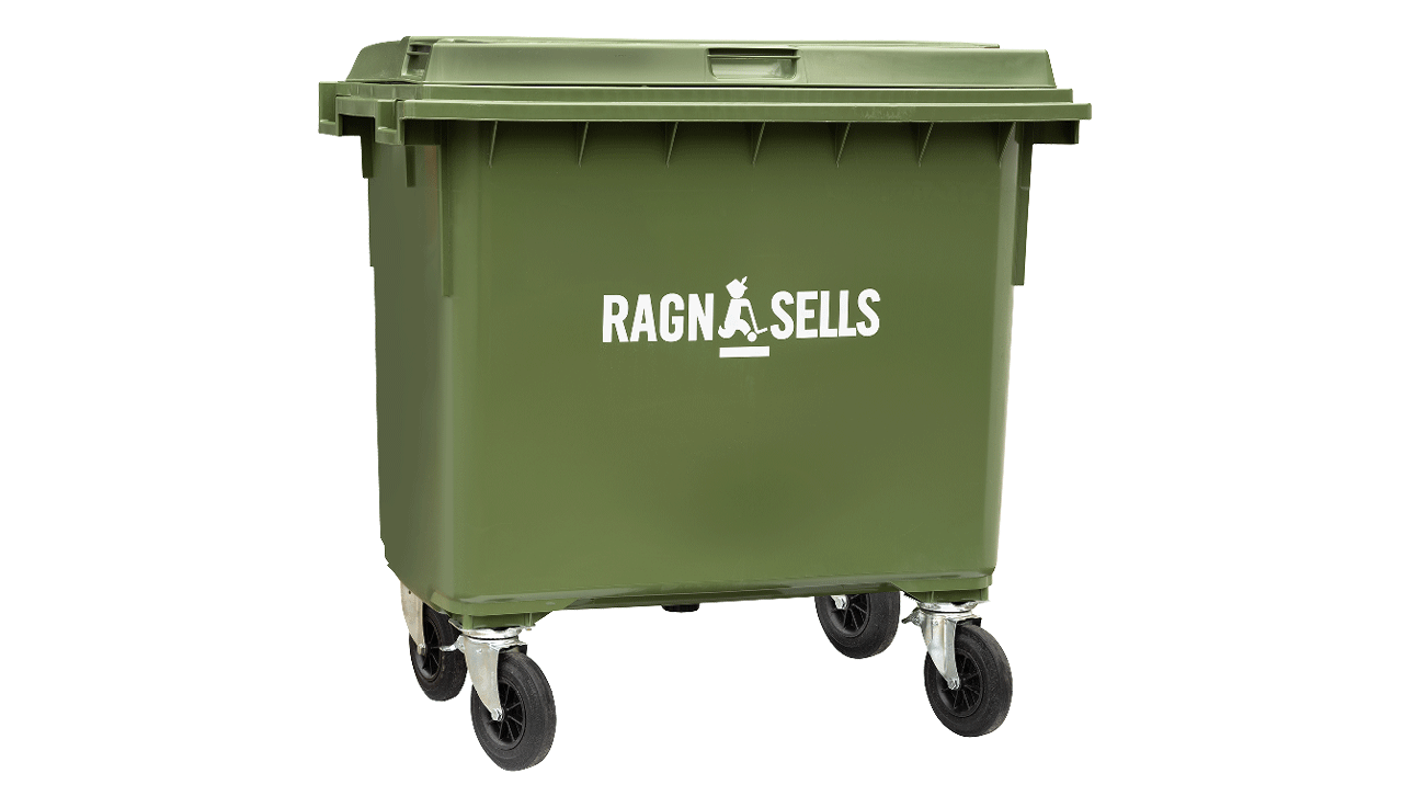 660 liter beholder i plast passer til blandet avfall, papp, papir, EE-avfall m.m.