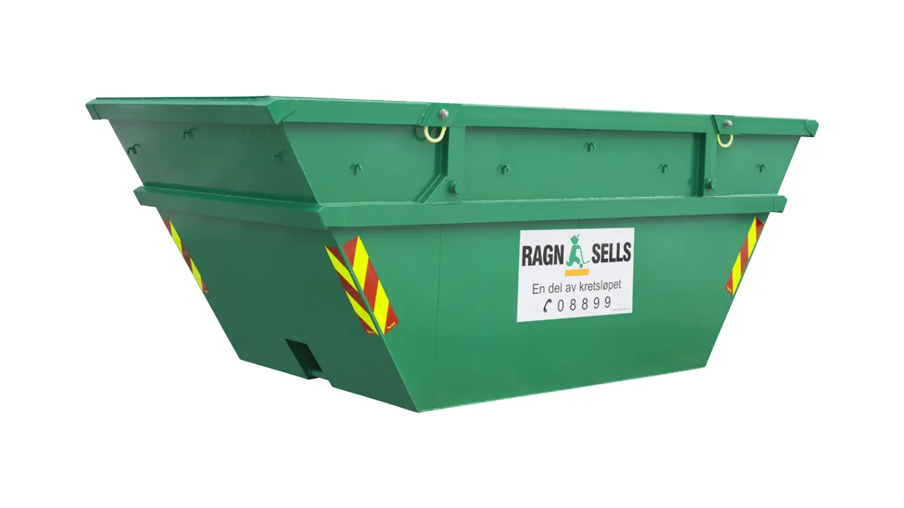 8m3 sertifisert liftcontainer er beregnet til løft med kran, transport og tømming med liftbil. Containeren har gaffellommer for enkel håndtering på byggeplass, og kan stables og har tippekasser i begge ender. Containeren er laget av stål og er kraftig avstivet. Den passer for flere typer byggavfall.