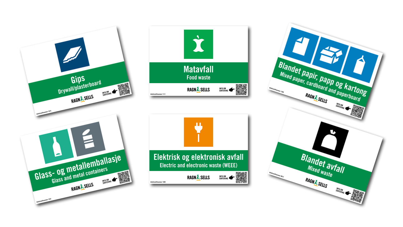 Her finner du forbruksmateriell som fraksjonsmerker, hengelåser og båndruller til emballasjepresser.