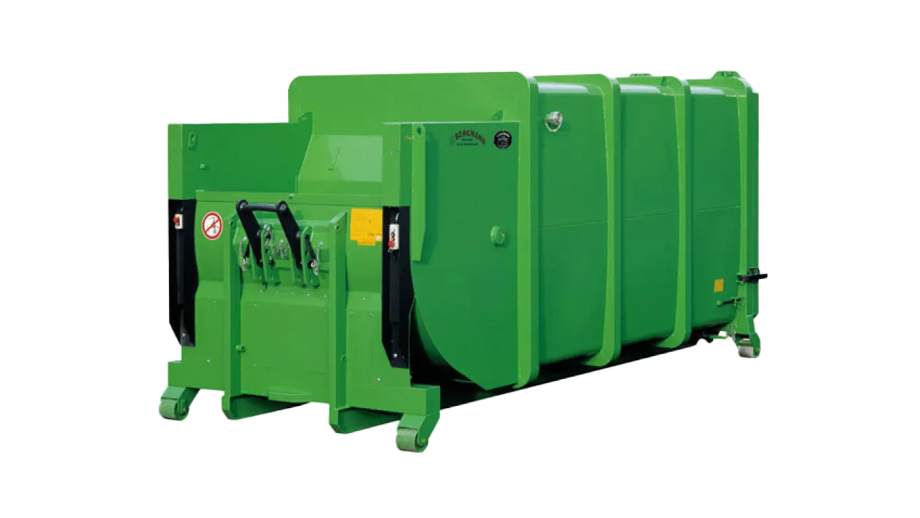 Bergmann MPB 907 krokkomprimator leveres i størrelsene i 14m3, 18m3 eller 20m3, og anbefales spesielt for fuktig avfall. Maskinen er spesielt godt egnet for hoteller, restauranter, kantiner, sykehus, sykehjem og storkjøkken. Maskinen tømmes med krokbil.