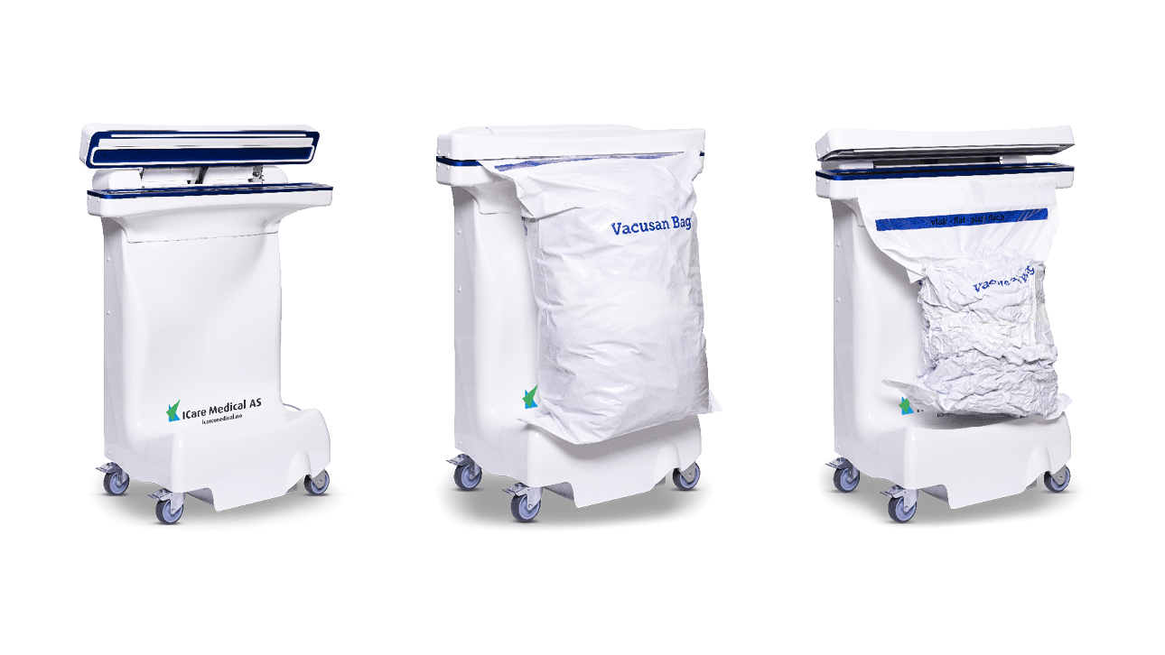 VacuSan vakuum maskin for barnehager, helsesektoren m.m forbedrer lukt, hygiene og intern logistikk. Den reduserer også antall transporter og kostnad ved avfallshåndtering.